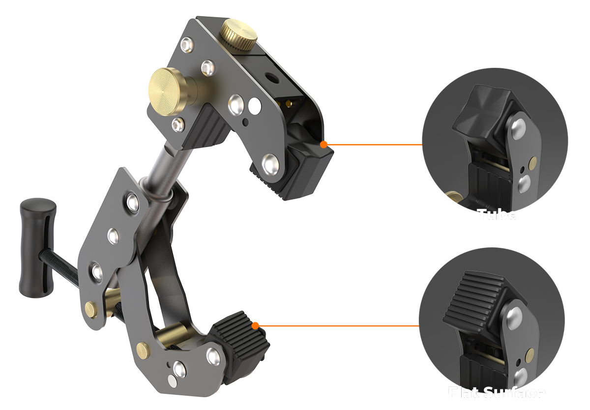 Progettato per soddisfare i requisiti di estrema durata delle riprese in ambienti edili e industriali, il supporto a morsetto (ACC1000) può essere installato in modo sicuro su un’ampia varietà di superfici. L’esclusivo design di montaggio a più punti consente di regolare il morsetto, secondo necessità, per ottenere l’angolo di visuale perfetto.