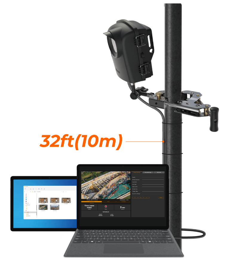 La sicurezza del cantiere è essenziale per qualsiasi progetto di costruzione. Con la BCC2000Plus, l’accesso alla tua telecamera è veramente senza scale. Il Camera Extender Kit (AFB1000) elimina la necessità di arrampicarsi per accedere alla videocamera. Connettiti senza sforzo al tuo laptop o tablet (sistema operativo Windows a 64 bit) utilizzando il cavo da 32 piedi e ottieni l’accesso immediato alla tua videocamera per scaricare i file, regolare l’intervallo di acquisizione, le impostazioni dell’immagine, programmare, avviare e interrompere la registrazione. Puoi anche controllare la durata della batteria della tua videocamera e la memoria residua della scheda SD.